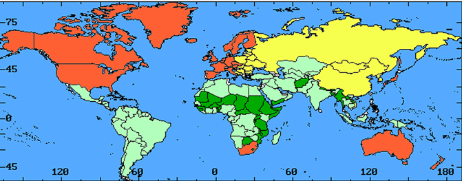 Все страны мира объединяются в группы по различным признакам, как то: численность населения, размер территории, форма правления, внутренний валовый продукт на душу населения. Наиболее полную и исчерпывающую информацию дает расчленение стран по последнему из приведенных признаков. Принятая ООН классификация - деление стран мира на "промышленно развитые", "развивающиеся" и страны с "централизованной плановой экономикой" объединяет в одну группу чрезвычайно разные страны. Очевидно, что такие страны как, например, США и Швейцария, отнесенные к категории "экономически развитые страны", или Кувейт и Папуа-Новая Гвинея (попавшие в группу развивающихся) имеют, безусловно, общие черты, но еще больше между ними различий.
