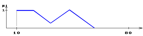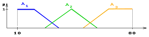Пример: Пусть эксперт определяет толщину выпускаемого изделия с помощью понятий "малая толщина", "средняя толщина" и "большая толщина", при этом минимальная толщина равна 10 мм, а максимальная - 80 мм.