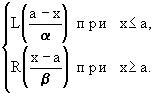 Пусть L(y) и R(y) - функции (L-R)-типа (конкретные). Унимодальное нечеткое число А с модой а (т.е. mA(a)=1) c помощью L(y) и R(y) задается следующим образом:
