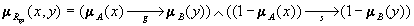 mRb(x,y) = (1-mA(x)) Ú mB(y);