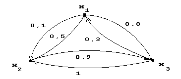 Пусть Х={x1,x2,x3}, и задано нечеткое отношение R: X´X® [0,1], представимое графом: