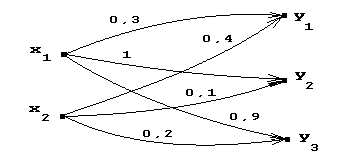 Пусть X={x1,x2} и Y={y1,y2,y3}, тогда нечеткий граф вида: