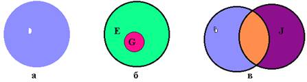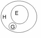 Здесь изображен типичный пример совместимых подчиненных понятий, где объем понятия, видового (G) и (Е) - является частью объема другого - родового (Н). А между собой эти понятия (G и Е) являются соподчиненными