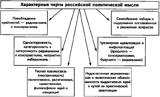 Русская политическая мысль допетровской эпохи в целом развивалась параллельно с государственностью. Она выражала социально-культурную специфику древней Руси, оказала большое влияние на судьбу государственности, вылилась в устойчивые традиции политической жизни. На Руси не произошло реформации подобной той, что прошла по Европе. Эпицентр развития не переместился на человека. Православие несло с собой идею полного подчинения человека Божеству, растворение личности в Божестве. Не был острым вопрос о двоевластии, церковь находилась под властью царя. Церковь была прогосударственно настроенной, но оставалась так же источником развития антигосударственных тенденций, т. к. противостояла среднему слою. В средневековой Руси сложилась манихейская традиция перепадов в ориентациях , позициях , ненависти к противникам.
