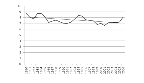 7. 15 новых независимых государств. Общий коэффициент смертности (на 1000 населения), 1950-2006 [Электронный ресурс] // Демоскоп. – 2008. - режим доступа: http://www.demoscop.ru