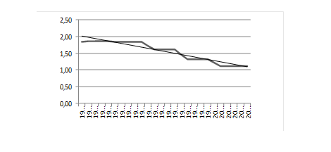 В большинстве стран мира в 2005 году о.к.с. находился в интервале от 5 до 25 ‰ в год.