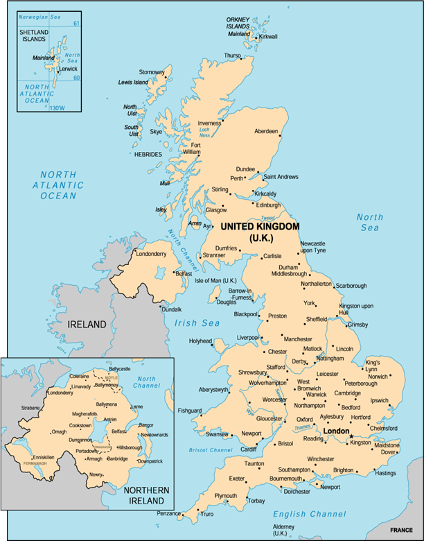 Карта Соединенного Королевства Великобритании и Северной Ирландии