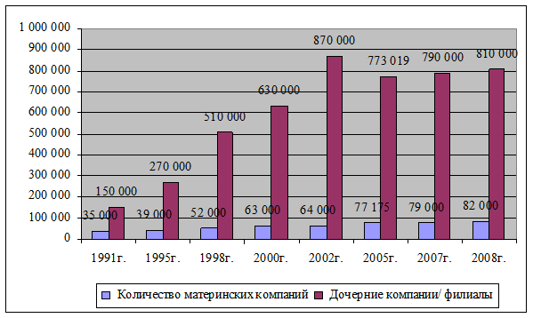 Рисунок 1 - Динамика роста ТНК за период 1991-2008гг.