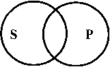В этих суждениях субъект и предикат - перекрещивающиеся понятия, их объемы, как показано на схеме, частично совпадают. Однако в некоторых частноутвердительных суждениях объем субъекта шире объема предиката: например, "Некоторые актеры - ветераны Великой Отечественной войны"; "Некоторые писатели - герои России". Объем предиката здесь входит в объем субъекта, но объем субъекта только частично совпадает с объемом предиката. Таким образом, в частноутвердительных суждениях субъект и предикат - перекрещивающиеся понятия или предикат подчинен субъекту.