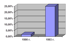 Еще один впечатляющий пример распада экономики — взаимные задолженности предприятий, которые к концу 1995 г. достигли 57% ВНП. Причина этого не в последнюю очередь заключается в том, что предприятия значительную часть своей продукции производят «в отвал», поскольку она не находит сбыта ни в России, ни за рубежом.