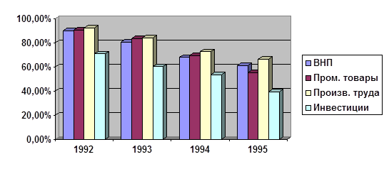 Разрушение белорусской экономики, начавшееся в 1992 г. еще при правительстве Кебича, при Лукашенко продолжилось и приняло драматические формы. Сам президент в июле 1996 г. говорил, что экономика находится в «свободном падении».