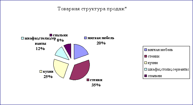 На украинском рынке бытовой мебели доля импортной продукции составляет 40%, отечественной же 60%( в физическом выражении). Товарная структура продаж выглядит следующим образом: