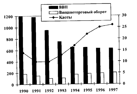 На протяжении большей части XX столетия Россия по существу выпадала из системы нормальных внешнеэкономических связей. С одной стороны, это объяснялось известными политическими причинами, с другой стороны, жестко централизованная, командно-распределительная советская экономика с ее планово-нормативными издержками производства и искусственными ценами по самой своей природе трудно совмещалась с мировым рыночным хозяйством и могла поддерживать обмен с ним лишь в ограниченном диапазоне.