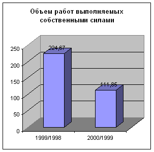 Объем работ выполняемых собственными силами | 224,67 | 111,85 |
