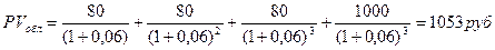 Если требуемая норма доходности составляет 6%, то текущая стоимость облигации будет равна: