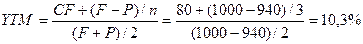 CFn — сумма полученного процента в каждом периоде (произведение номинала облигации на объявленную ставку процента (Nобл -к);