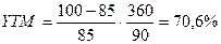 Предположим, требуется определить уровень доходности облигаций к погашению, если цена покупки - 850 руб., цена выкупа (номинал) — 1000 руб., срок обращения облигации - 90 дней: