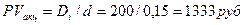 Текущая стоимость акций со стабильным уровнем дивидендов определяется как отношение суммы годового дивиденда к рыночной норме доходности: