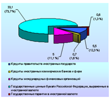 Согласно отчету о состоянии государственного внешнего и внутреннего долга Российской Федерации на начало и конец отчетного финансового года, объем государственного внешнего долга Российской Федерации составил на 1 января 2009 года в долларовом эквиваленте 40,6 млрд. долларов США, что подтверждено результатами проверки и не превышает установленный верхний предел государственного долга. Объем и структура государственного внутреннего долга Российской Федерации представлены на рисунках 2.5. и 2.6.