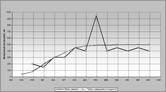 Рисунок 3.1.1 – Возможный объем работ и темпы наращивания мощности
