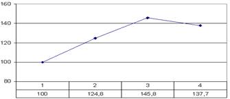 Основной макроэкономической тенденцией развития республики в последние годы (с 2006 по 2008 гг.) является стабильный прирост валового регионального продукта. Анализ индекса физического объема ВРП показывает, что в 2006-2008 гг. валовый региональный продукт постоянно рос и достиг к 2008г. 240,4 млрд. руб. В 2009г. динамика прироста ВРП стала отрицательной (рис. 1).