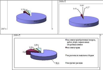 Для наглядности представим диаграмму структуры денежных средств, направленных на текущую деятельность ООО «Виктория-Гранд» за 2007-2009 гг. (рис. 4).