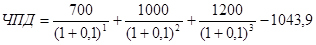 Предполагалось, что сумма доходов в первый год эксплуатации составит – 700 тыс. руб., во второй год – 1000 тыс. руб., третий год – 1200 тыс. руб. Норма дисконта – 10%.