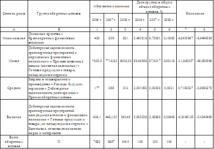 Характеристика состояния оборотных активов предприятия по категориям риска