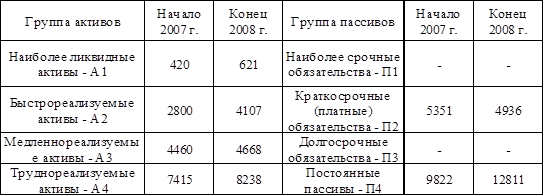 Группировка активов по уровню их ликвидности и обязательств по срочности их оплаты