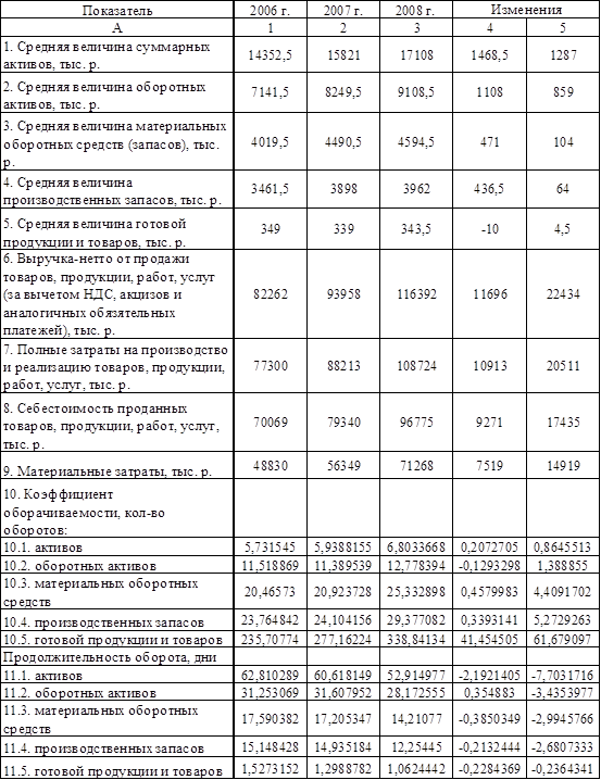 Динамика общих и частных показателей оборачиваемости активов предприятия