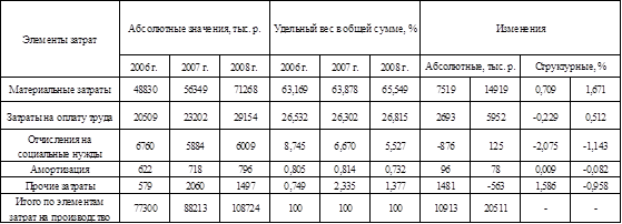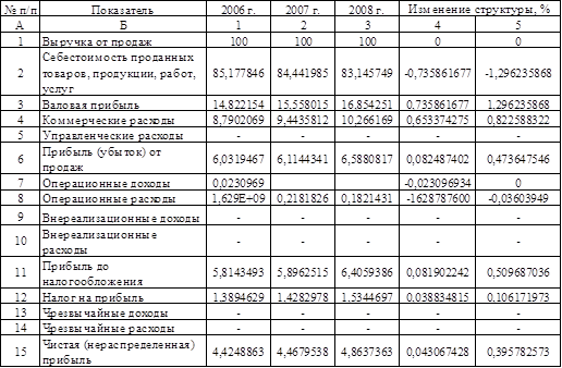 Структурно-динамический анализ основных элементов формирования конечных финансовых результатов деятельности