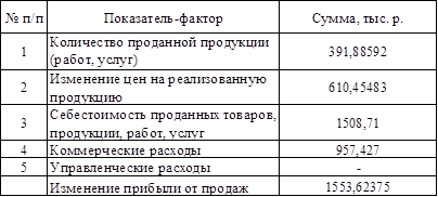 Сводная таблица влияния факторов на прибыль от продаж отчетного периода
