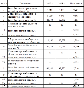 Изменение рентабельности активов, оборотных активов и собственного капитала за счет отдельных факторов