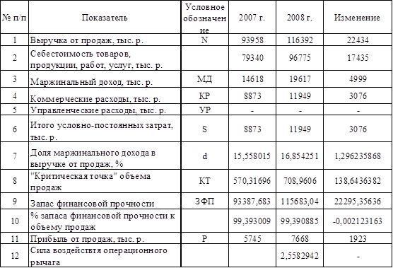 Расчет "критического" объема продаж, запаса финансовой прочности и операционного рычага