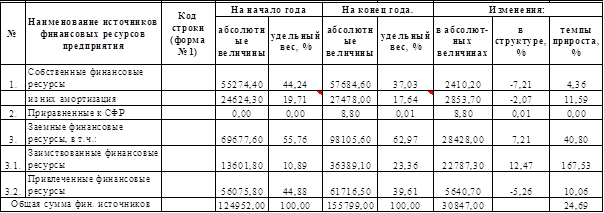 · На начало года в общей структуре финансовых ресурсов более 10 % заняли следующие статьи: прочий дополнительный капитал (16,14 %), амортизация (19,71 %) и долгосрочные кредиты банков (10,89 %). На конец года – прочий дополнительный капитал (12,94 %), амортизация (17,64 %) и краткосрочные кредиты банков (16,93 %).