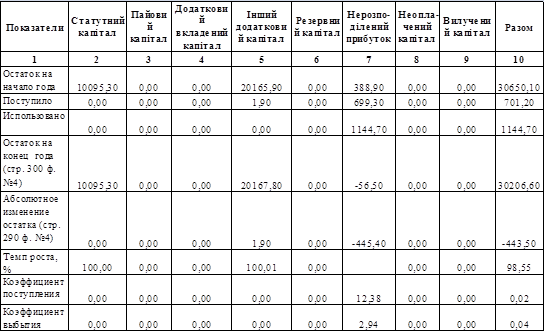 Проанализировав соотношение коэффициентов поступления и выбытия, можно сделать вывод, что на предприятии собственного капитала используется в два раза больше, чем поступает. В структуре собственного капитала наибольший удельный вес занимает прочий дополнительный капитал. Доля уставного капитала увеличилась на 0,48%, в то же время увеличилась доля прочего дополнительного капитала на 0,98%.