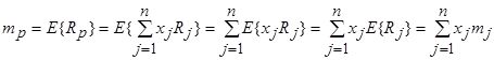 С учетом правил вычисления математического ожидания ожидаемая доходность портфеля равна