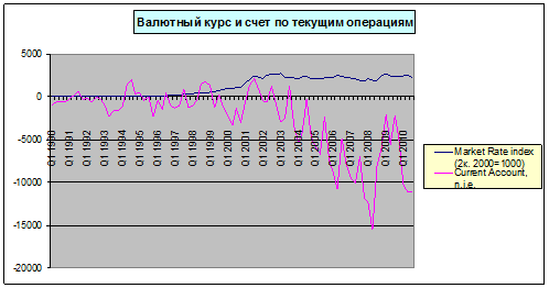 Текущий счет в Турции является отрицательным. Следовательно, валютный курс объясняется данной теорией, и отрицательная величина текущего счета ведет к девальвации национальной валюты.