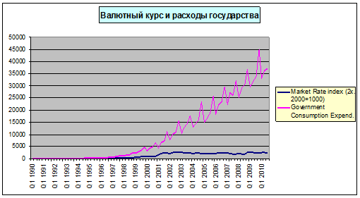 На протяжении анализируемого периода расходы бюджета Турции увеличивались. При этом, их рост не был стабильным, наблюдались большие колебания. При уменьшении расходов государства национальная валюта дорожает, в данном же случае при их увеличении курс турецкой лиры падал, происходила ее девальвация.
