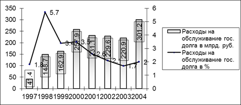 Динамика расходов на обслуживание государственного долга за период с 1997 по 2004гг
