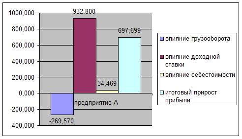 За счет повышения доходной ставки на 0,029 р/т-км. - т. е на 23,16%, для предприятия А прибыль возросла по сравнению с планом на 936,8 тыс. руб., однако за счет снижения грузооборота прибыль снизилась на 269,57 тыс. руб., из-за себестоимости прибыль предприятия возросла на 34,47 тыс. руб. В общем итоге прибыль предприятия А повысилась на 697,699 тыс. руб, и составила 2045,55 тыс. руб. Рентабельность предприятия А составила повысилась почти в 2 раза и составила 70, 19%.