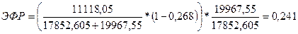 Разность между рентабельностью собственного капитала и рентабельностью всего инвестированного капитала образуется за счет эффекта финансового рычага (ЭФР):