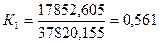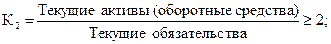 где К1 – коэффициент обеспеченности собственными оборотными средствами: