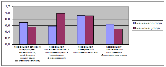 Показатели финансовой устойчивости на конец периода наиболее близки к рекомендуемым значениям, что говорит о слаженной работе в области достижения финансовой устойчивости предприятия.