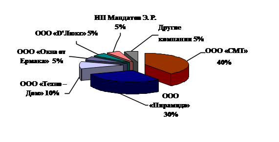 Диаграмма 2.4. - «Конкуренты ООО «Пирамида» и доля, занимаемая на рынке Бурятии» [16]