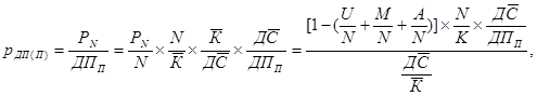 Обозначив факторы, включенные в аналитическую модель, через х, а результативный показатель (рдп) через у, получим факторную модель следующего вида: