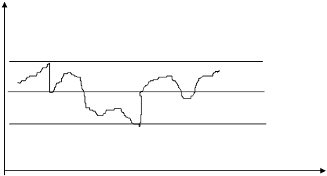 Таким образом, в 2006 г. оптимальный остаток денежных средств предприятия должен был находиться в пределах интервала (680,47; 726,52) с точкой возврата – 695,82 тыс. руб. Фактически же денежных средств было 557 тыс. руб., что было меньше оптимально допустимой верхней граница на 138,82 тыс. руб. В 2007 г. оптимальный интервал (830,41; 877,18), фактическое наличие денежных средств было ниже оптимума на 345 тыс. руб. В 2008 г. практически аналогичная картина, сопровождающаяся самым значительным отклонением средств на расчетном счете и в кассе ООО «Конди» - оптимальный интервал (977,92; 1025,75), что выше фактического остатка на 916,87 тыс. руб. Это говорит о неумении предприятия распоряжаться денежными средствами, их недоиспользовании и замораживании. То есть средств у предприятия не хватает на осуществление ежедневной текущей хозяйственной деятельности, а их излишки вполне могли бы быть направлены на финансовую или инвестиционную деятельность для получения дополнительного дохода. Так, рассчитав модель Миллера-Орра для ООО «Конди» в прогнозном 2009 г., можно построить график управления денежными средствами (рис. 7).