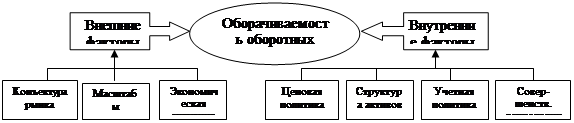 Выделим основные факторы, которые влияют на скорость оборота оборотных средств. Наиболее существенные из них показаны на рисунке 1.