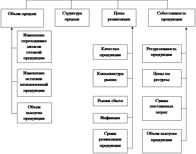 Объем реализации продукции может оказывать как положительное, так и отрицательное влияние на сумму прибыли. Увеличение объема продаж рентабельной продукции приводит к увеличению прибыли. Если же продукция является убыточной, то при увеличении объема реализации происходит уменьшение суммы прибыли.