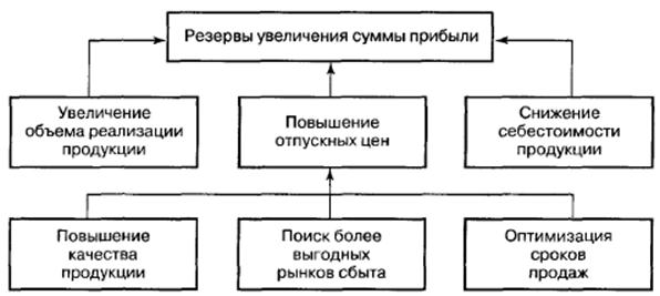 Основные источники резервов увеличения суммы прибыли (которые определяются по каждому виду продукции): увеличение объема реализации продукции, снижение её себестоимости, повышение качества продукции, реализация её на более выгодных рынках сбыта и т.д. (рис. 2)